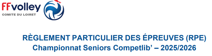 Informations sur le fichier Télécharger Taille : 206.2 Ko Date de parution : 02/03/2026 Nombre de téléchargements : 7 Catégorie : Règlements Particuliers des Épreuves Départementales 0 Note Règlement Particulier des Épreuves - Championnat Séniors Competlib' - 2025/2026